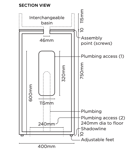 Basin Dimensions: 400mm (D) x 115mm (H)