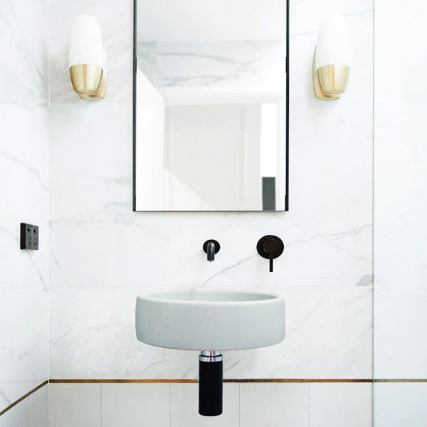 Nood Co Concrete basins are comprised of a natural material. Each piece has a visual patina, colour variation, pin-holing (surface holes) and surface variation. These characteristics have no bearing on the structural integrity of the concrete piece. Nood Co Concrete colours, feel, and aesthetic can look different in photos and it is suggested to purchase sample pieces prior to manufacture to ensure you are comfortable with your product.