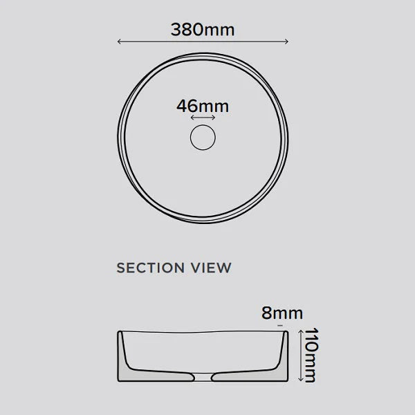 • Dimensions: D380mm x H110mm (D15in x H4.33in)