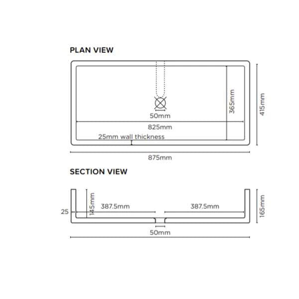 • Dimensions: L875mm x W415mm x H165mm (L34.44in x W16.33in x H6.49in)