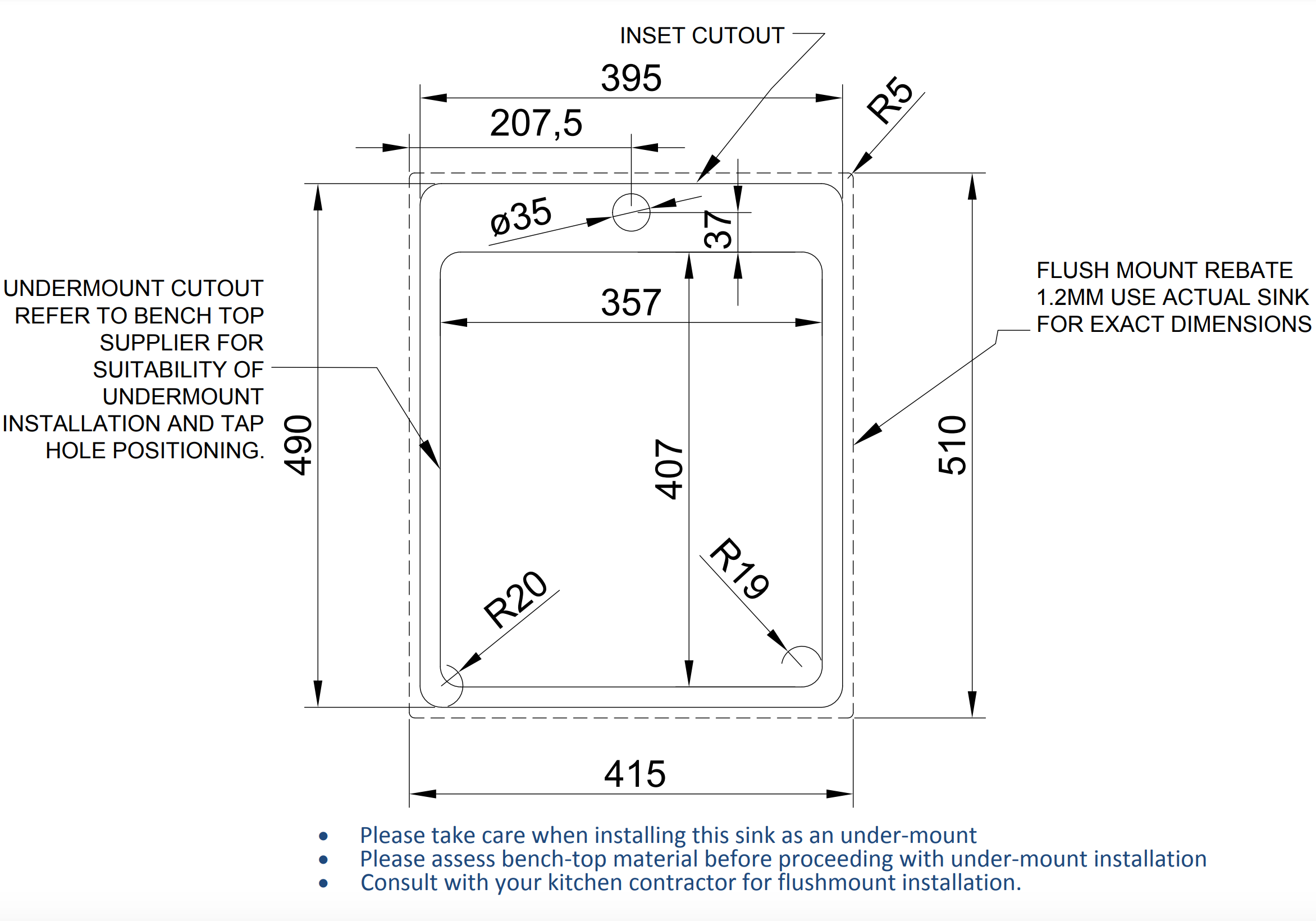 | Installation | Undermount, Topmount, or Flushmount |