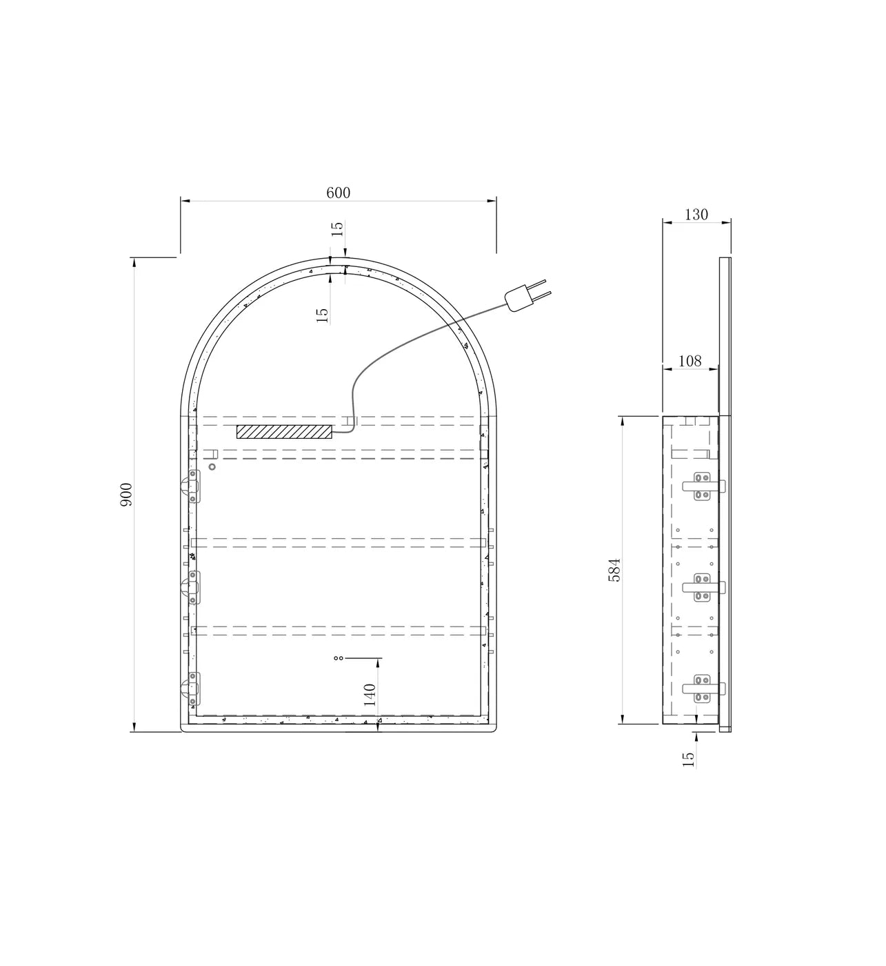 The Otti Archie LED Shaving Cabinet offers a modern touch to your bathroom, with its wall-mounted structure and Arch-shaped exterior mirror. Measuring 588x576x120mm, this cabinet comes with adjustable shelves for added versatility. The curves of the mirror provide a stylish and unique statement that adds freshness to any space. Install with ease and maintain for years to come.