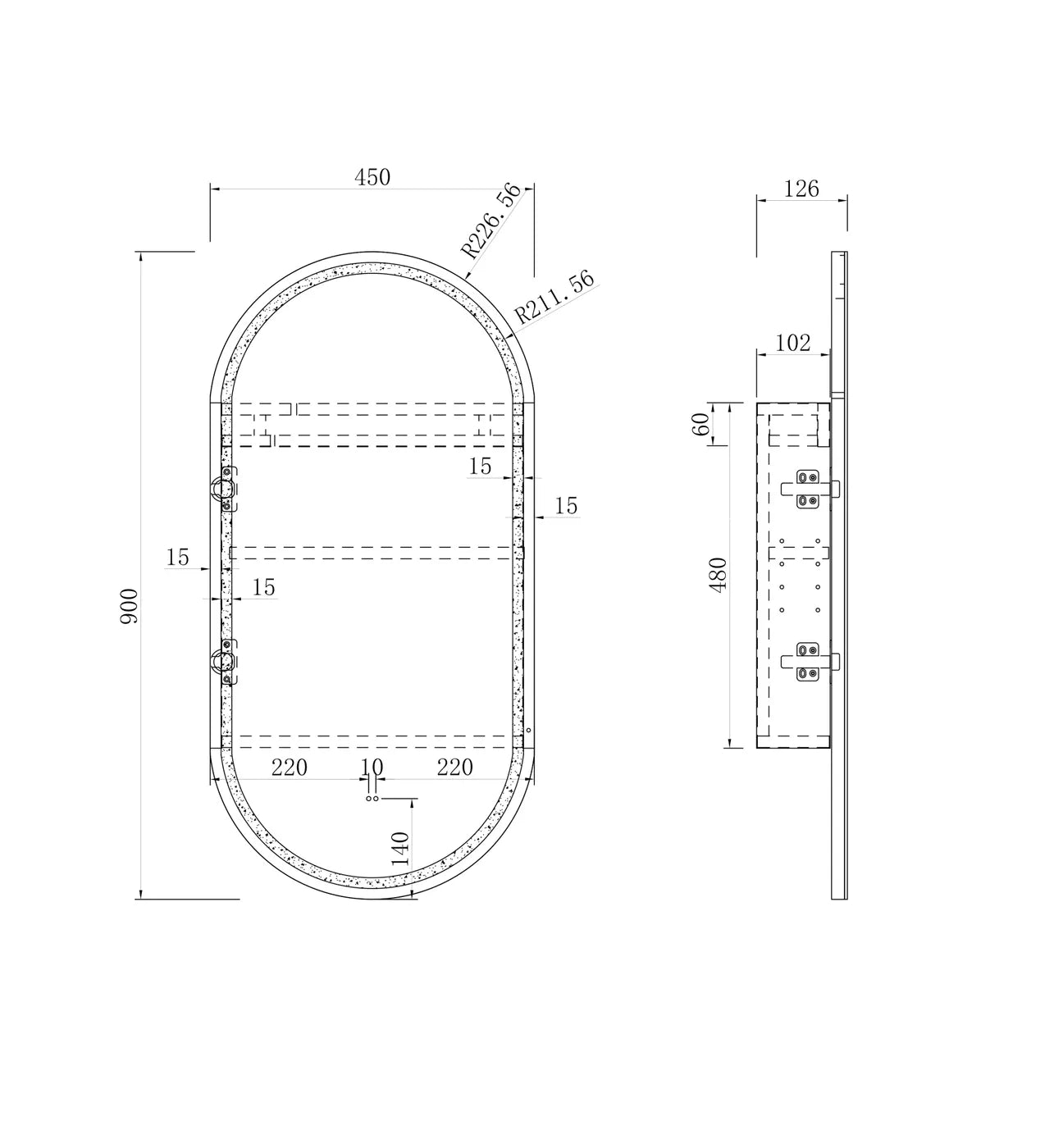 Otti Noosa Oval Shape LED Shaving Cabinet - Black Oak