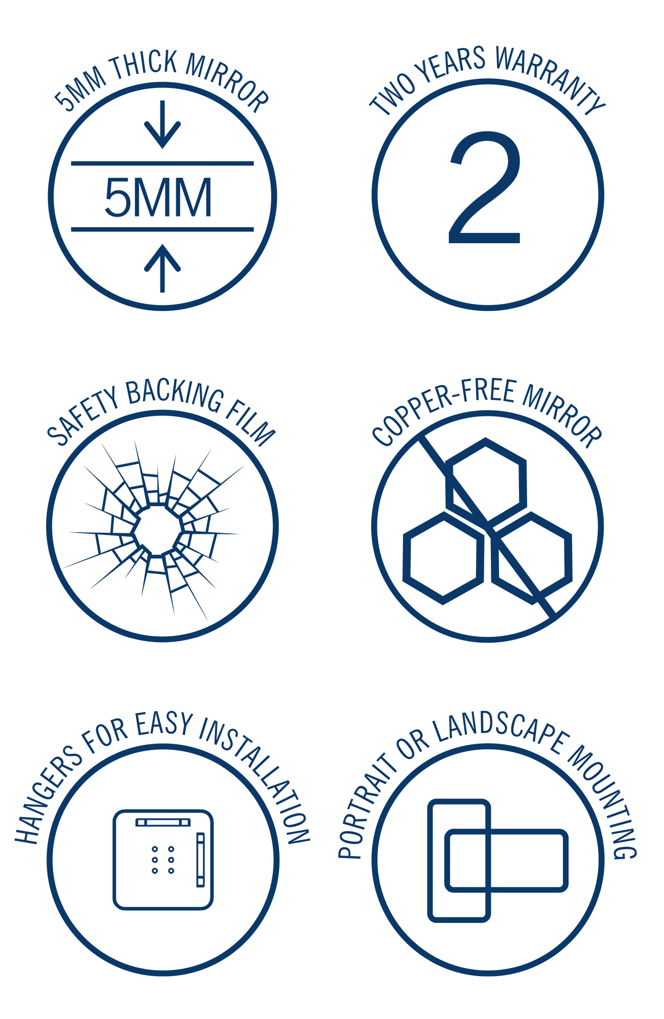 • Polished edge for a frameless and modern look