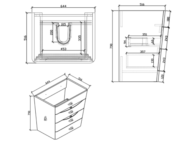 Dimension: 650mm (W) x 520mm (H) x 180mm (D)
