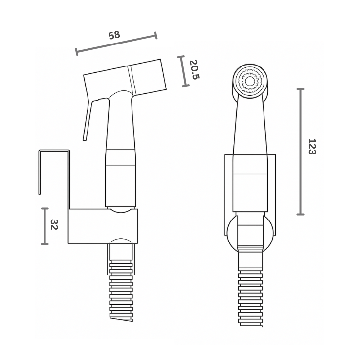 Upgrade your bathroom with the Round Toilet Bidet Spray Kit. Made of high-quality 304 Grade Stainless with a Brushed Nickel plated finish, this bidet spray offers a sleek and modern look. The included ABS spray holder and flexible stainless steel hose provide convenience and durability. Experience the benefits of a cleaner and more hygienic wash with this premium bidet spray kit.