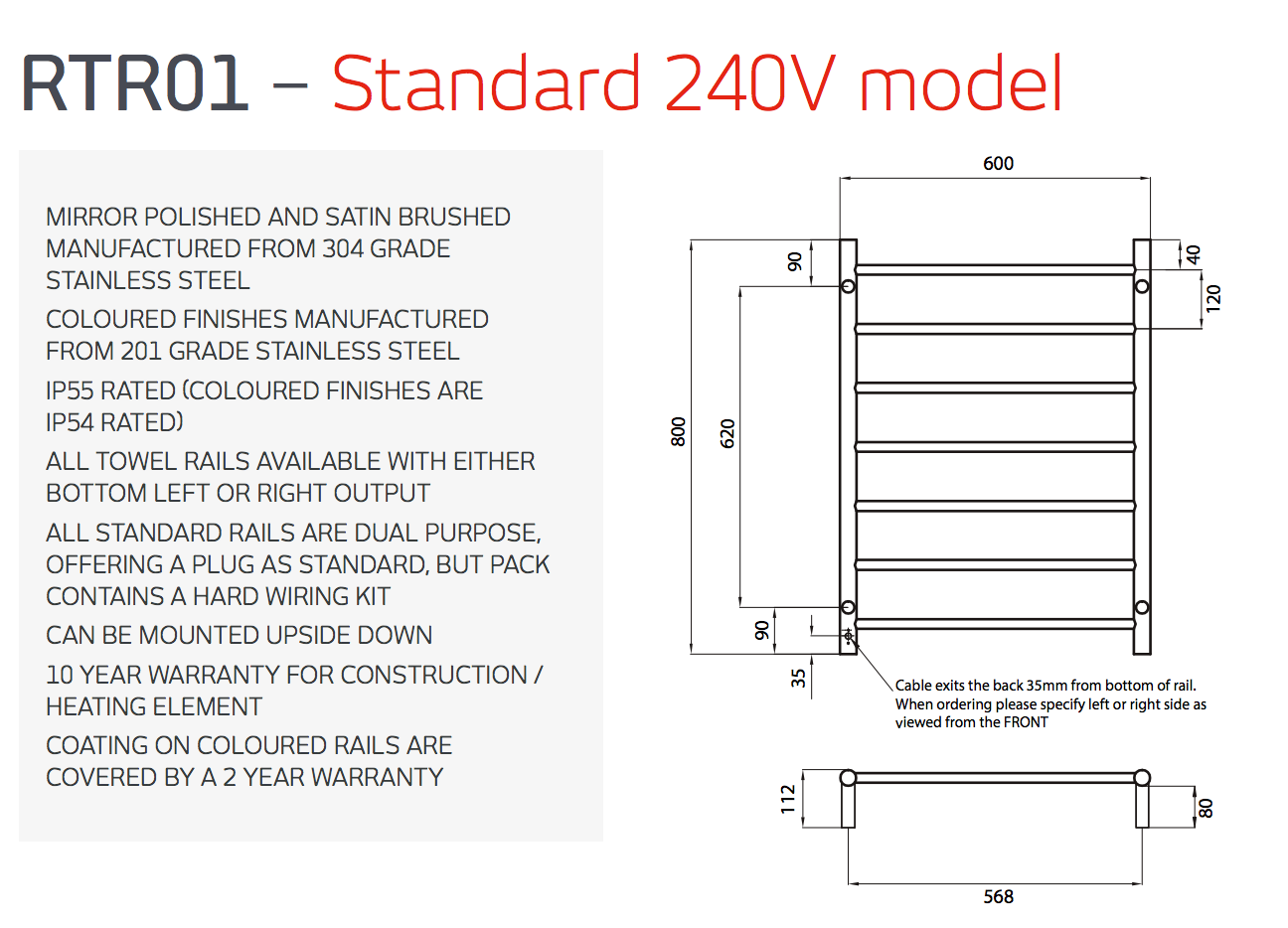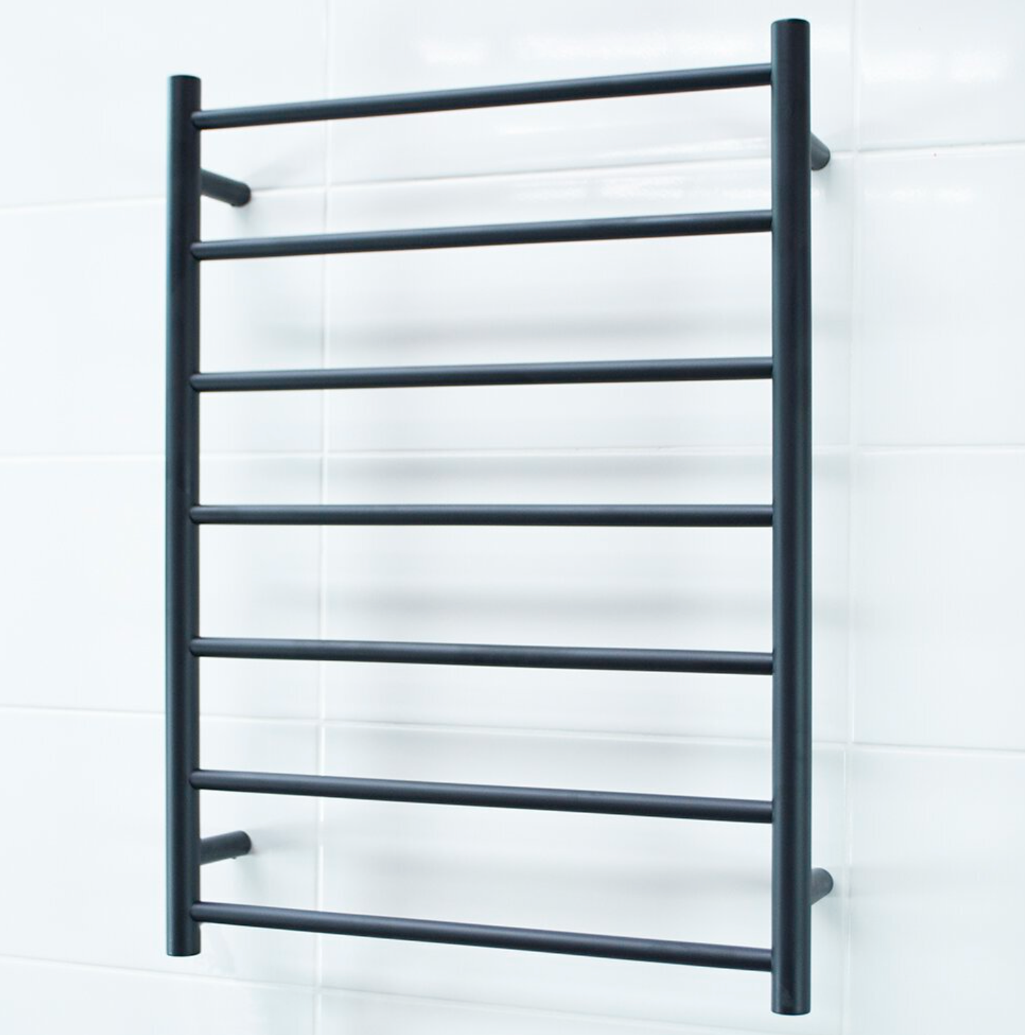 Our Radiant Heating Round Bars 240V Heated Towel Rails in Matte Black combine elegant design with practical functionality. Crafted to suit both traditional and modern bathrooms, these rails provide a luxurious touch while keeping your towels warm and dry. The powder-coated matte black finish ensures durability and a refined look. Available in various sizes, this 600 x 800 model offers an ideal balance of style and convenience for any bathroom setting.