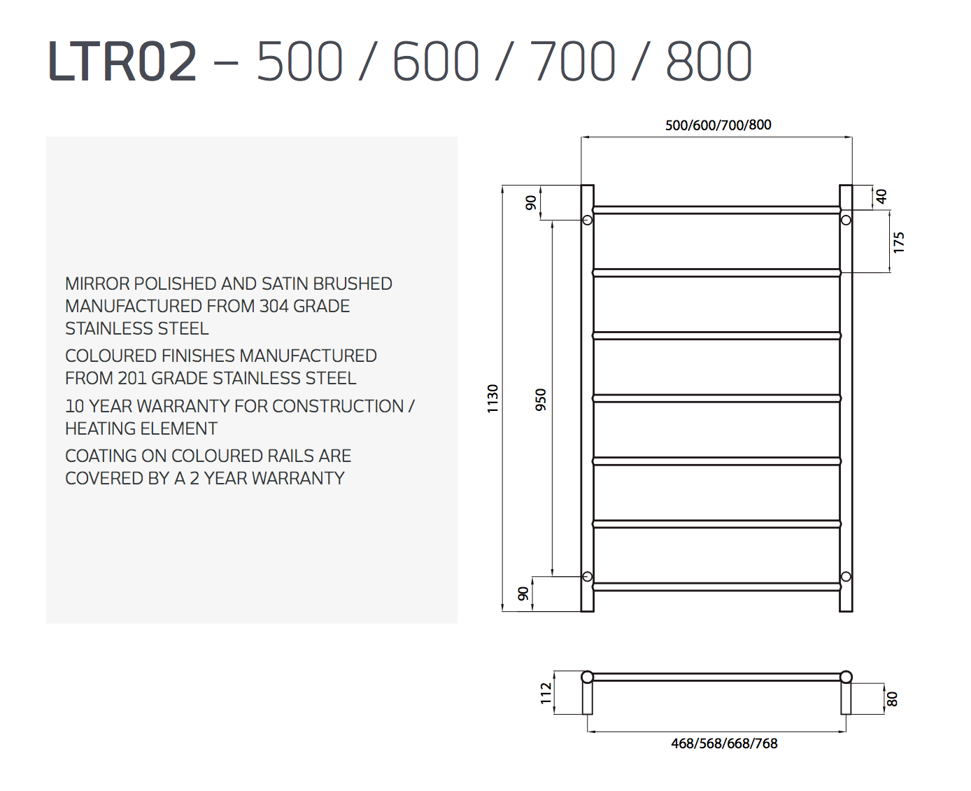 Elevate your bathroom with the Radiant Heating Round Bars Non-Heated Towel Rail. Measuring 800 x 1130 mm, its polished finish offers a sleek, modern aesthetic while providing a practical storage solution for your towels. This elegant addition combines form and function, enhancing your space with refined style and effortless organization.