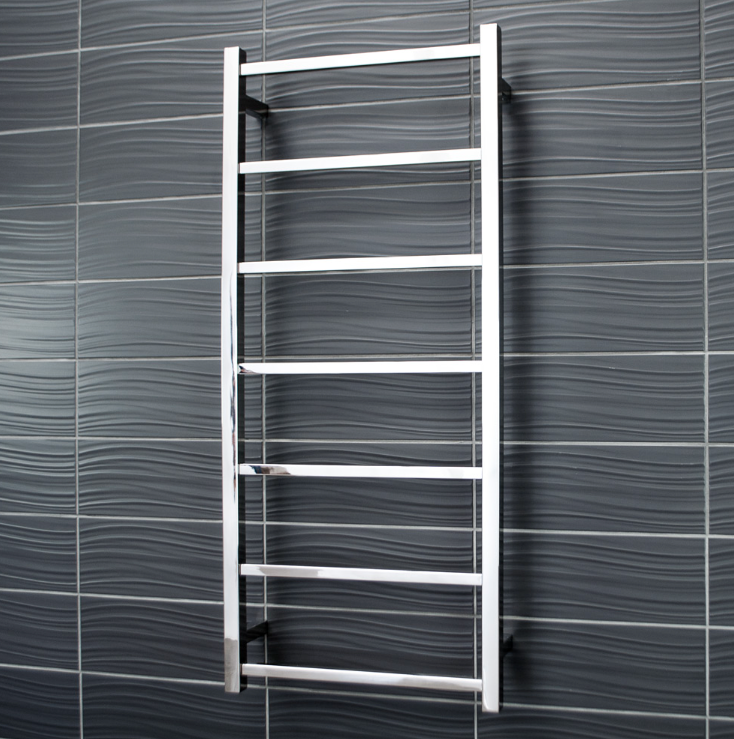 Elevate your bathroom with the Radiant non-heated towel rail, featuring polished square bars in a sleek 500 x 1130 mm design. This elegant piece offers a refined storage solution, combining functionality with a modern aesthetic to enhance your space effortlessly.