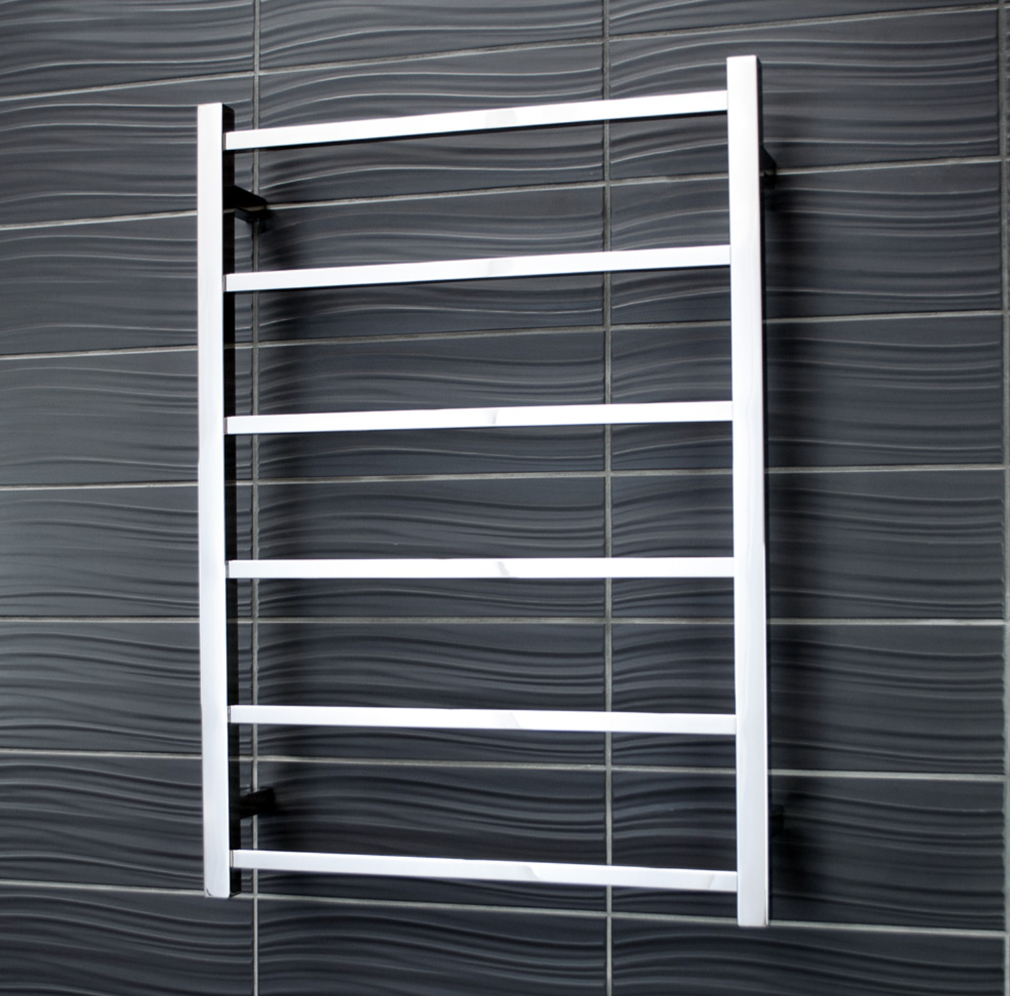 Elevate your bathroom with the Radiant non-heated towel rail, featuring polished square bars in a sleek 600 x 830 mm design. This elegant piece offers a refined storage solution that complements any décor, combining functionality with timeless style to enhance your space effortlessly.