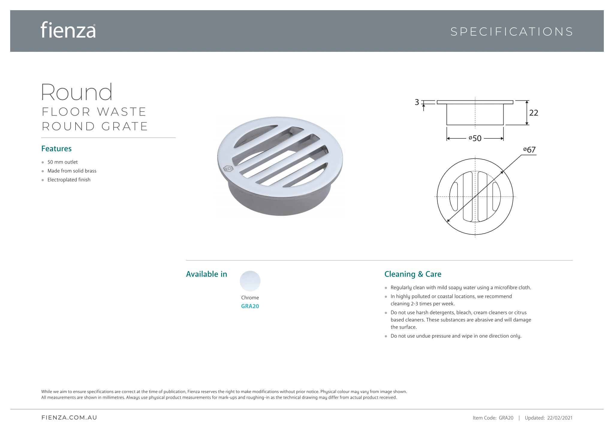 Fienza Round Floor Waste with Round Grate 50mm - Chrome