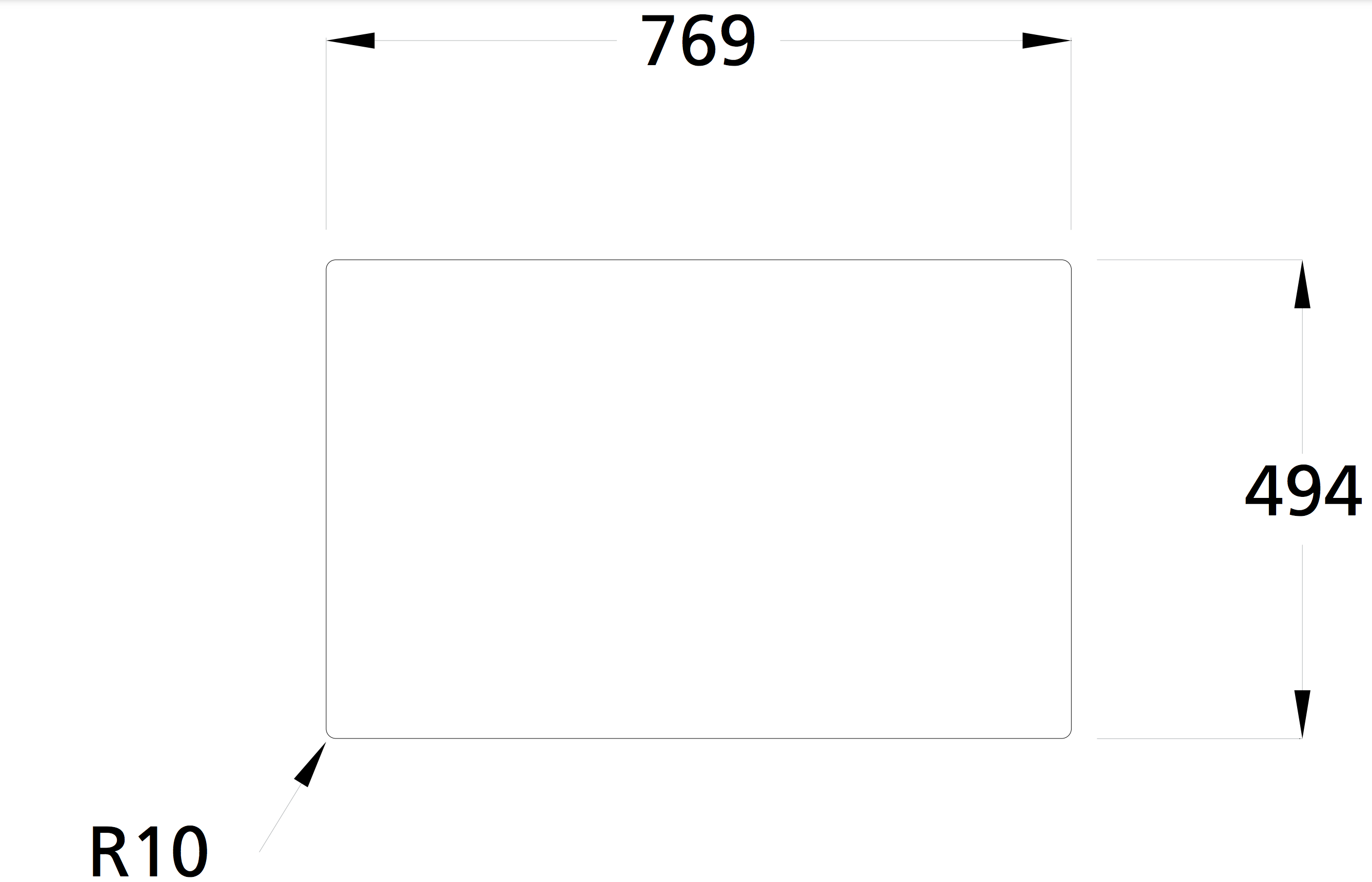 | Cut out template | 769mm x 494mm x 10mm radius |