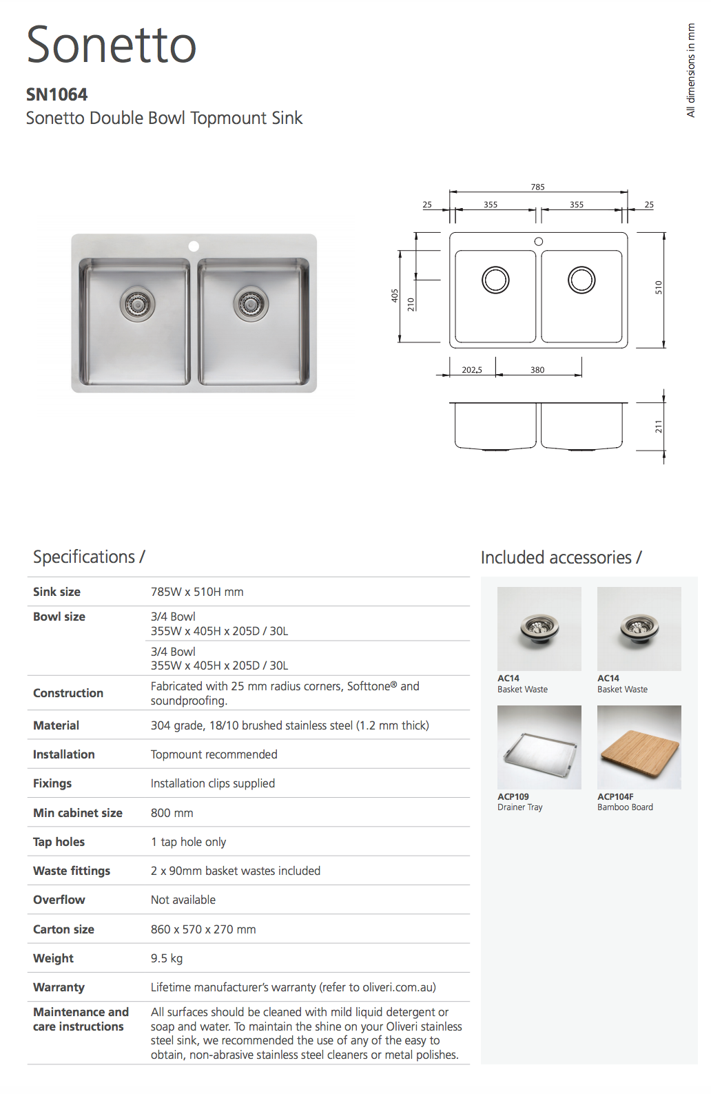 | Warranty | Lifetime manufacturer’s warranty (refer to oliveri.com.au) |