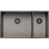 Double bowl sinks feature a curved bridge in between bowls that acts as an overflow to safeguard against accidental overfilling.