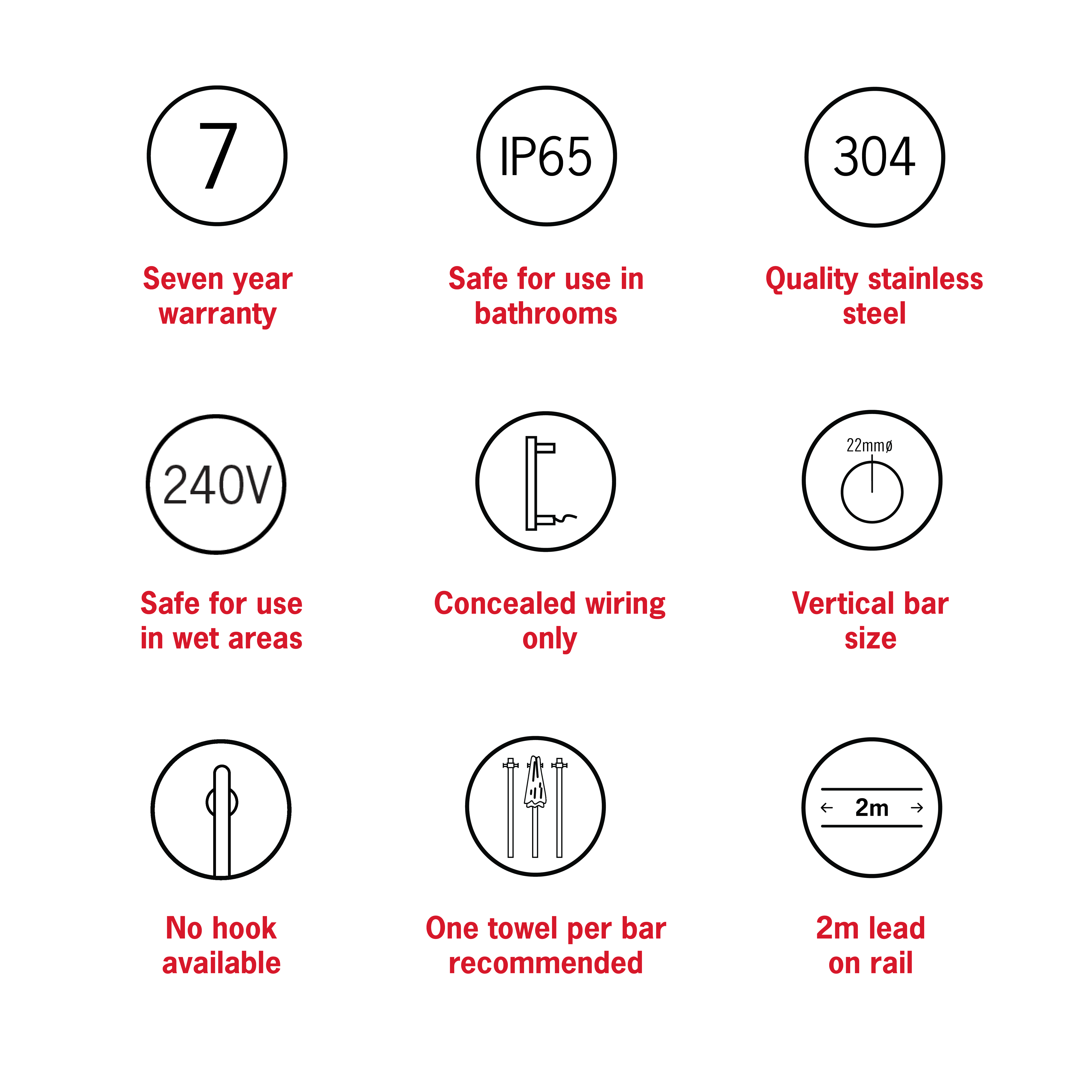All Thermorail vertical heated towel rails come with an optional hook that can be installed, enabling towels to be hung with greater ease than with a ladder rail. Although the vertical rail will help with drying, it offers less surface contact and is less effective in drying and warming towels than the ladder option. For optimal results and energy savings, pairing with a timer is recommended.