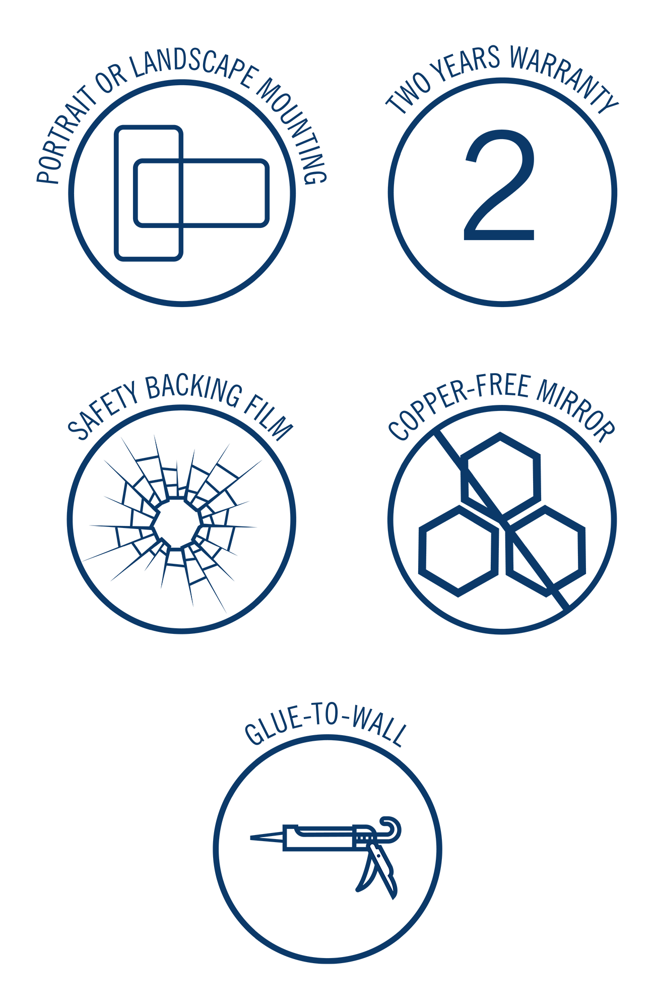 The Premium Back-Lit Mirrors are covered by a 3 Year replacement warranty. This covers the mirror and electrical components.