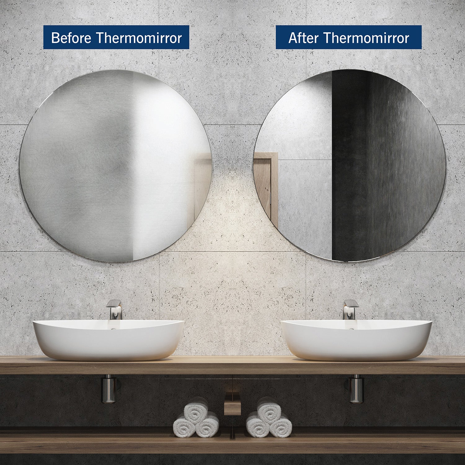 Thermomirror Demister Pads are an ultra-thin demister pad that provides a clear and condensation-free mirror even after a hot bath or shower. These pads are fully self-adhesive for attaching to the back of your mirror and have a single 240V connection point for easy installation. Typically a mirror fogs up due to the difference in temperature of the mirror and the temperature in the bathroom. The bathroom is warm from the shower or bath whilst the mirror is cold and this difference in temperature causes it to fog up. The mirror defogger warms the mirror to reduce the difference in temperature ensuring a steam free mirror in the bathroom.