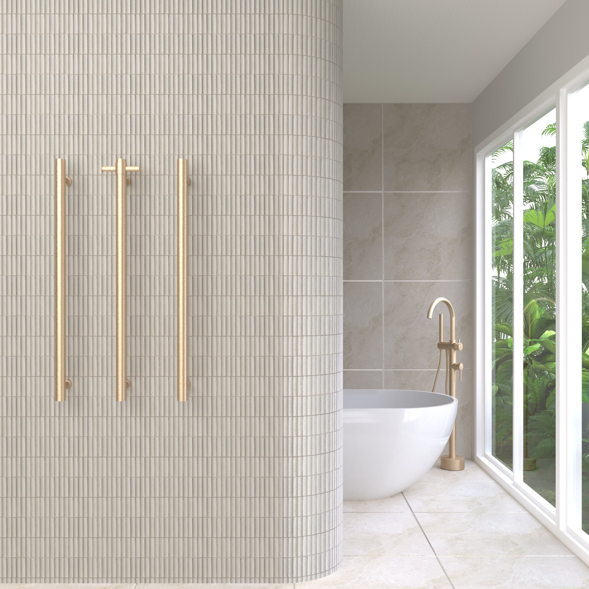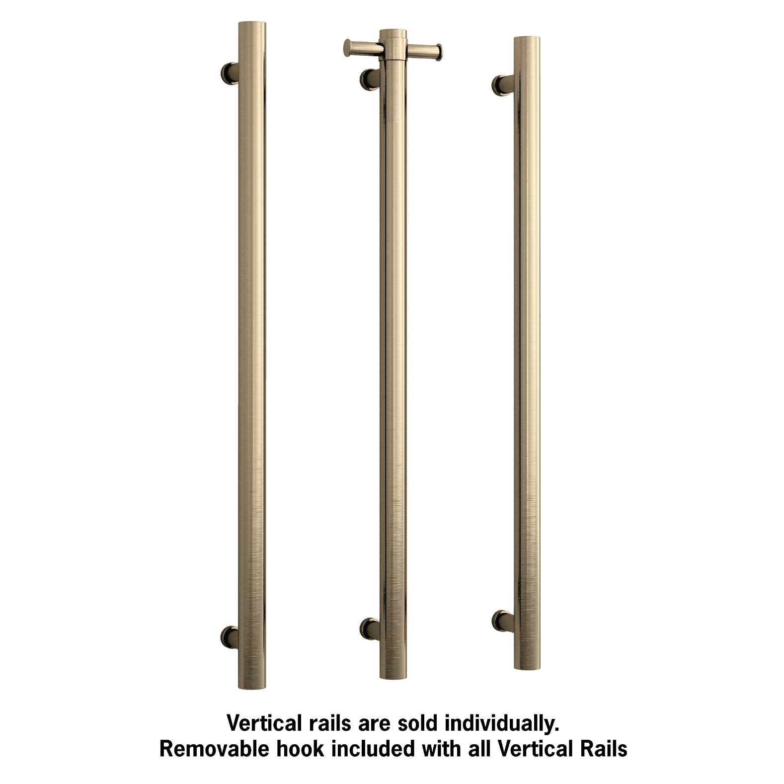 Experience affordable luxury with the Thermogroup Vertical Single Heated Rail in Brushed Brass. This 240V rail eliminates the need for a transformer, simplifying the installation process. The stylish brushed brass finish pairs perfectly with your tapware and its vertical design allows for use in bathrooms with limited wall space. Optional towel hook included.