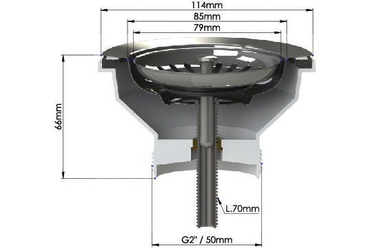 Turner Hastings 90x50 Brushed Brass PVD Basket Waste & Long Bolt