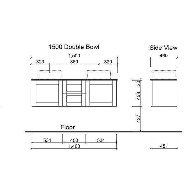 Product: Victoria Wall Hung Vanity with Silksurface Freedom Top & Basin